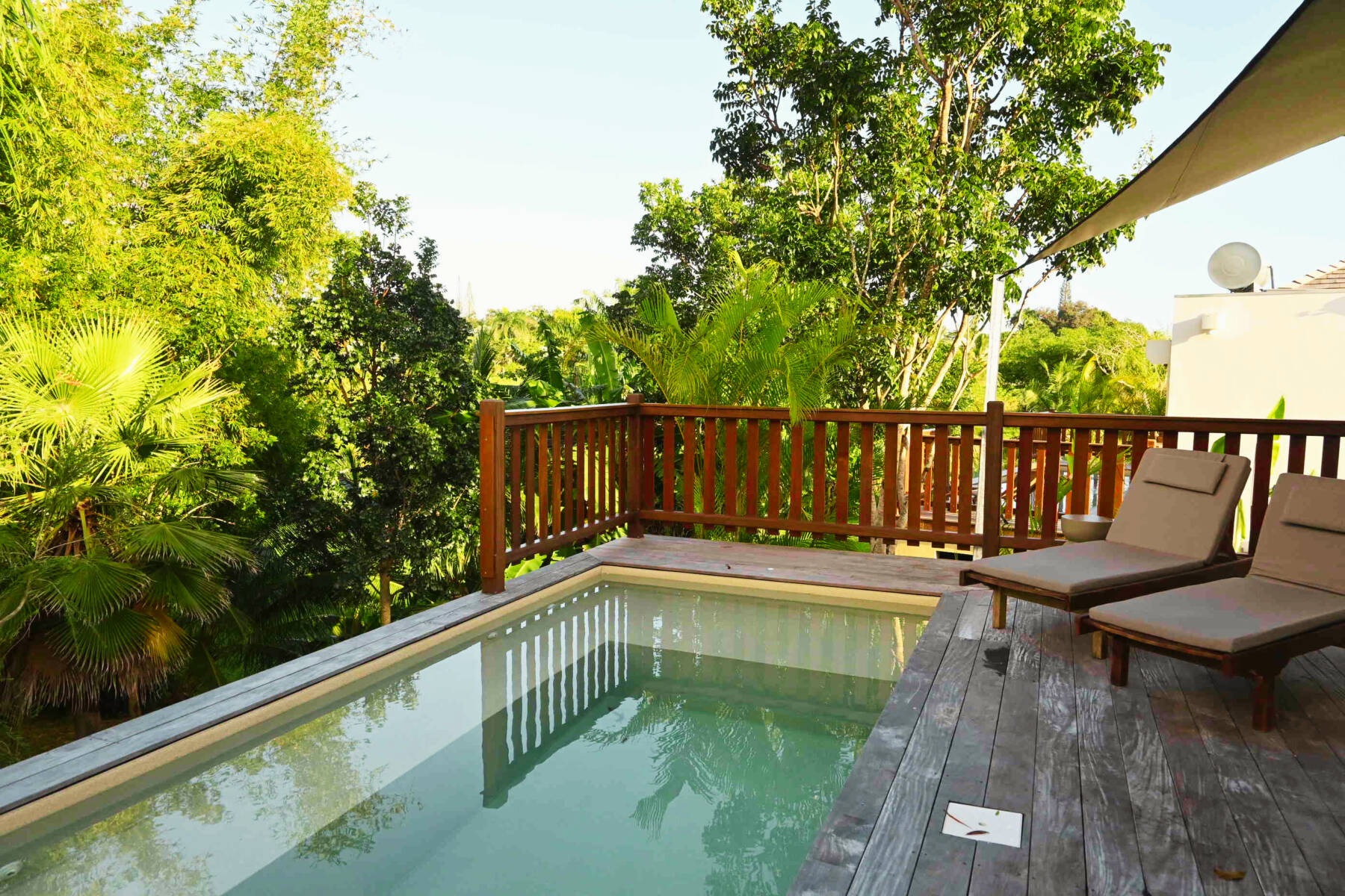 Séjourner dans nos Bungalow Prestige avec bassin privatif à L’Habitation Saint Charles****, c’est s’offrir une parenthèse tropicale, entre détente, élégance et sérénité.